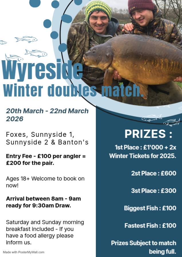 Entry fee - £100 per angler = £200 per pair.
